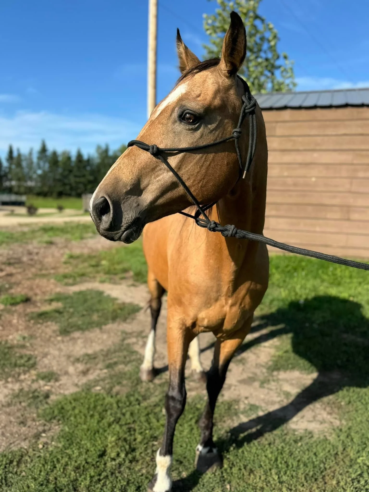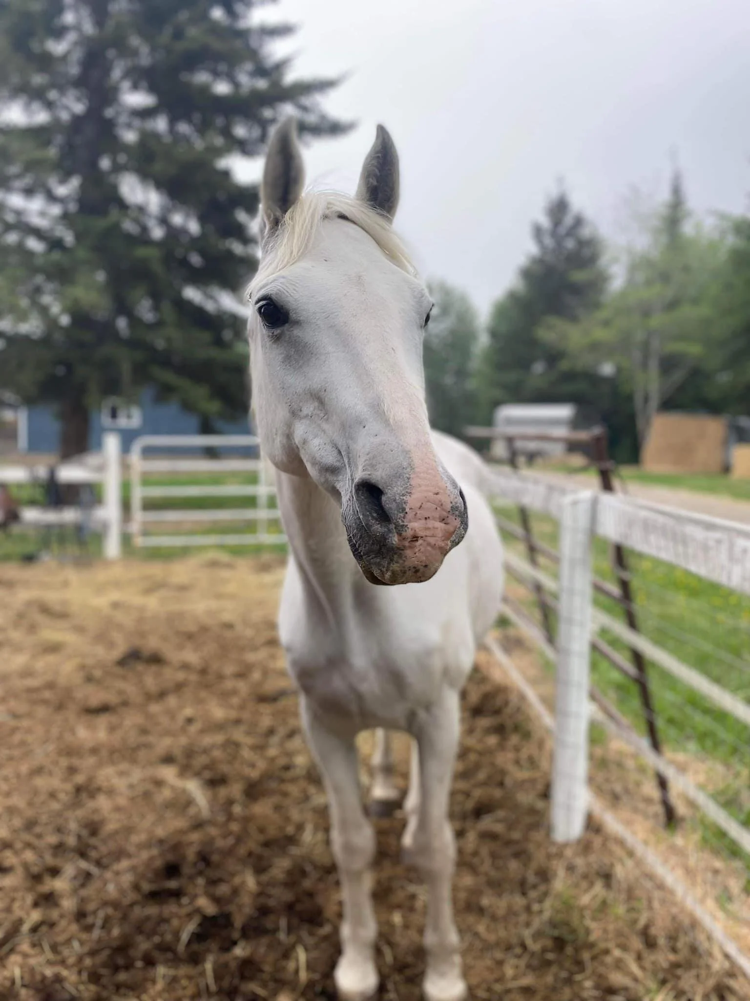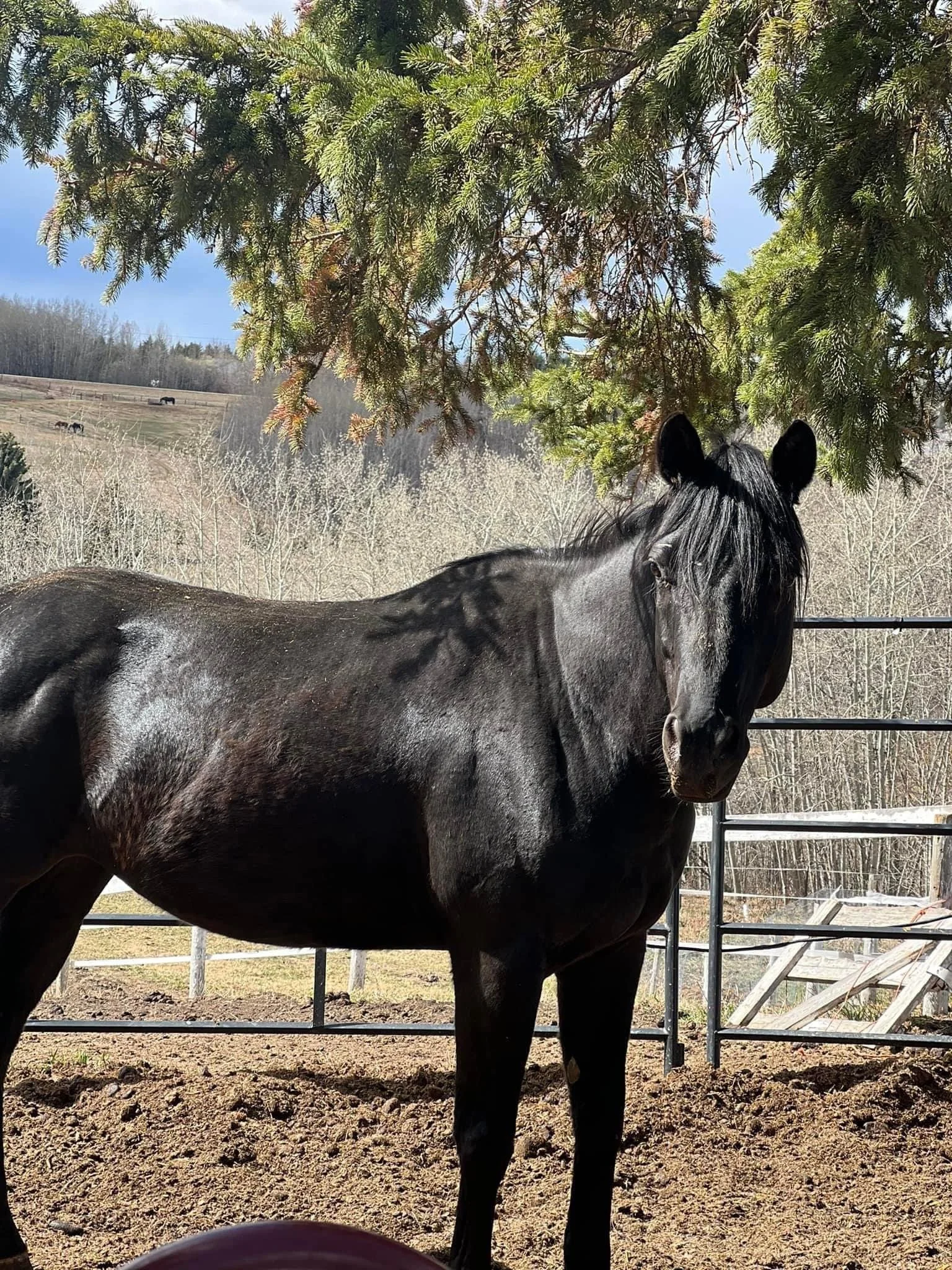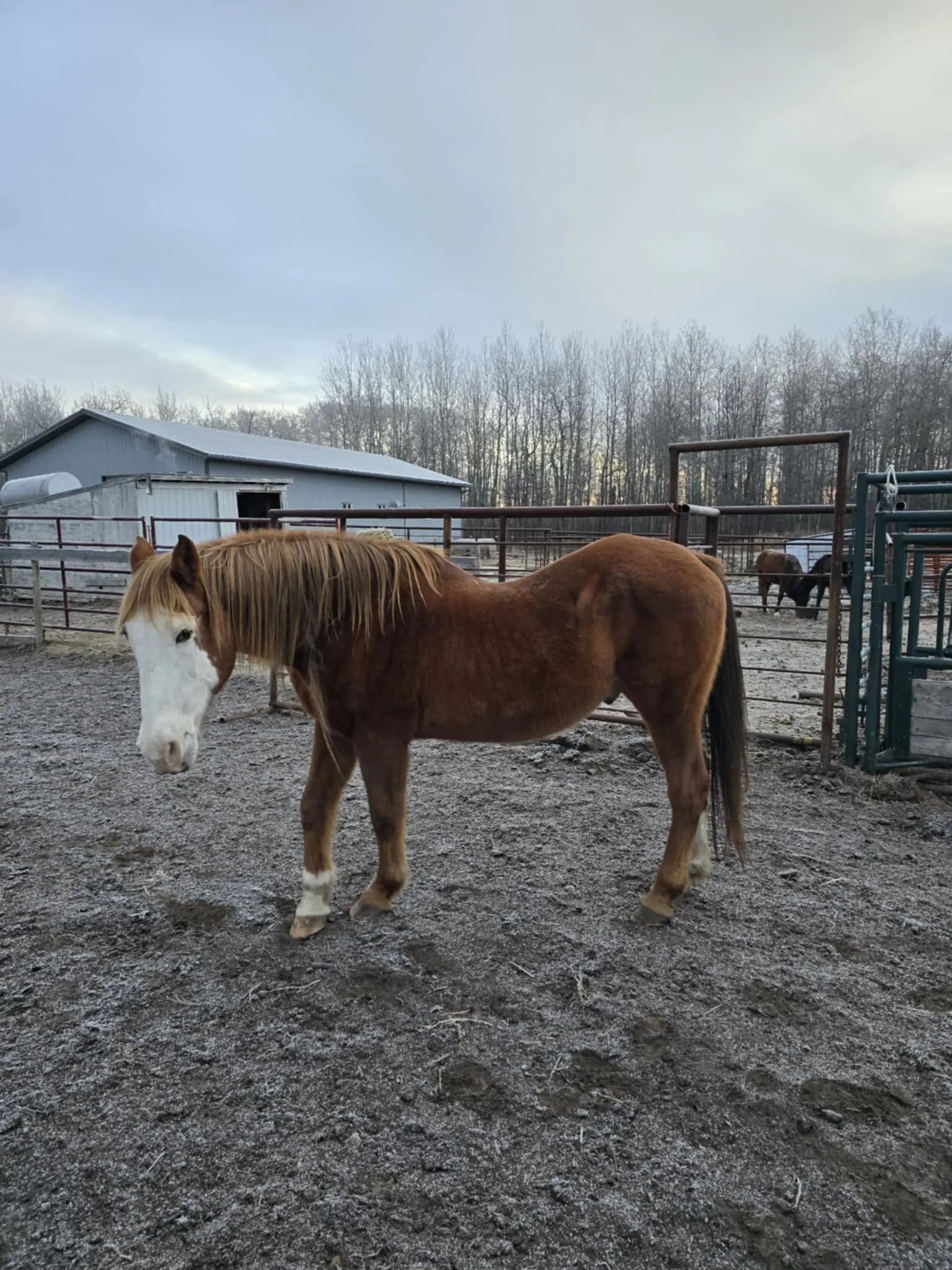 Rudolph was a beautiful nearly 30 year old gelding. He arrived to us by auction, with a significant heart murmur, old fractured ribs, minor arthritis and extremely sharp teeth. His knees started giving him a lot of problems, so we went forward with injections, which unfortunately didn’t help. In August 2023, Rudy was laid to rest. RIP our beautiful old man.