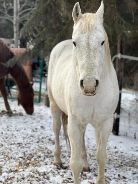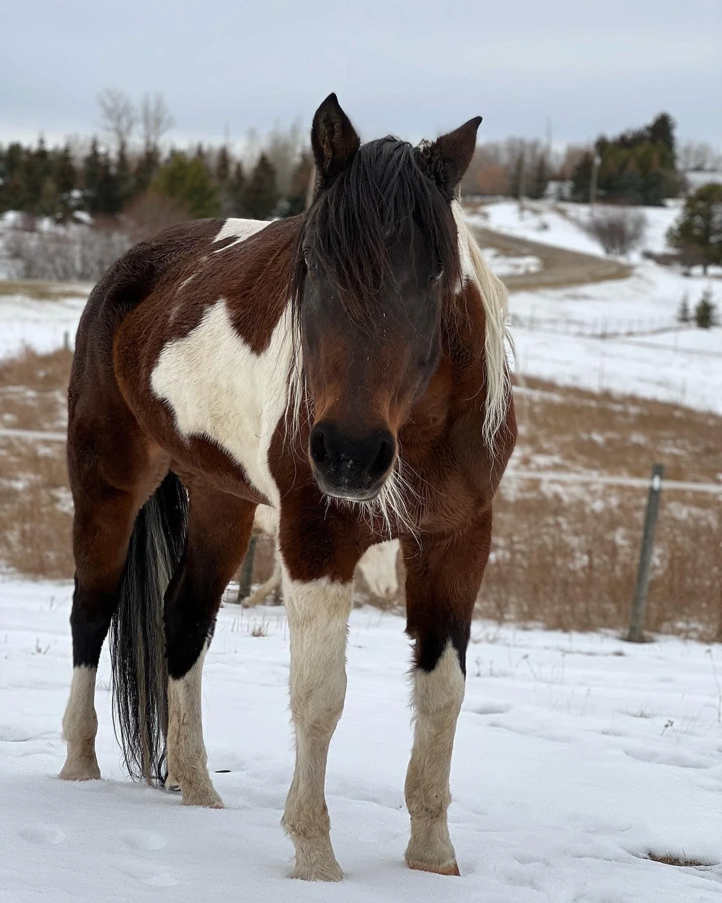Jingle arrived from auction after his family sent him to he sold for meat only. He had severe arthritis, so we managed his pain with previcox and injections. Unfortunately, despite our efforts, we could no longer keep him comfortable. He was a beloved family horse, who adored the kids. He touched hearts from all over, and we are so grateful we had time with him, even though it was far too short. RIP Jingle Bell